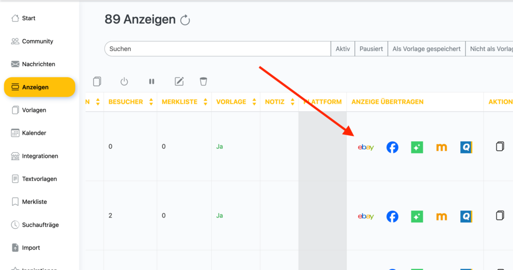 - eBay - Kleinanzeigen.de Anzeigen können direkt aus dem Dashboard heraus zu eBay übertragen werden, außerdem können spezifische eBay Vorlagen erstellt werden (aktuell nur Privat, da wir die Rückgabe-Policy noch nicht für gewerbliche Nutzer implementiert haben)