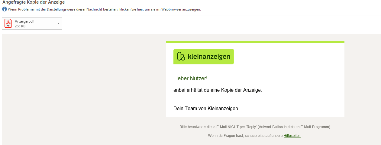 Ich wusste gar nicht, dass man Anzeigen auch per Email als PDF bekommen kann.