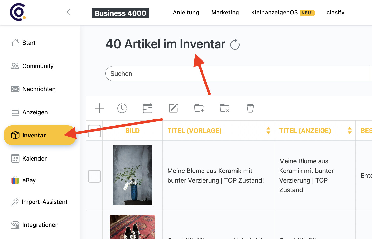 Aktuell nutzen wir „Vorlagen“ als Grundbaustein, um Anzeigen vorzubereiten. In Zukunft würde ich diese gern als „Artikel“ im „Inventar“ bezeichnen. Hintergrund: Viele nutzen die Vorlagen bereits wie eine eigene Sammlung, und „Artikel im Inventar“ beschreibt genauer, was es eigentlich ist. Am Ablauf ändert sich im ersten Schritt nichts – es geht wirklich nur um die Bezeichnung und eine bessere Struktur für spätere Erweiterungen. Geplant ist, dass Artikel in Zukunft einfach gleichzeitig auf mehreren Plattformen inseriert werden können.