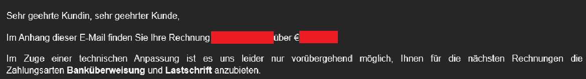 Ich zahle grundsätzlich per Überweisung. Seit Dezember steht jedoch in den E‑Mails von „Kleinanzeigen Finanzen“, dass es Schwierigkeiten mit der angebotenen Zahlungsmethode gibt. Das wirkt nicht gerade stabil: