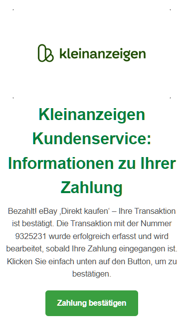 Hier ist die (angebliche) Nachricht von Kleinanzeigen: