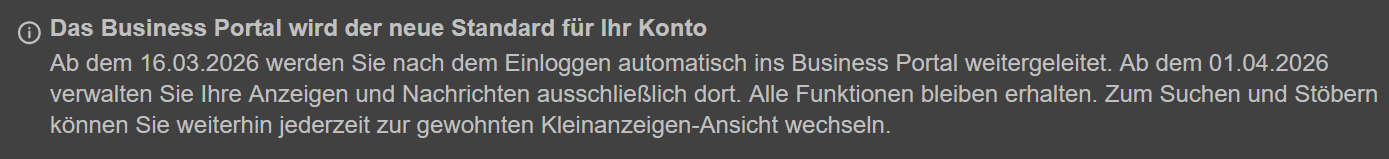 Kleinanzeigen liebt ja Monatsende‑Implementierungen… Vielleicht testen sie schon das neue Sichtbarkeitssystem für den “großen Web‑Relaunch & Business Portal” am 1. April. Passt ja irgendwie zum Datum ;-))
