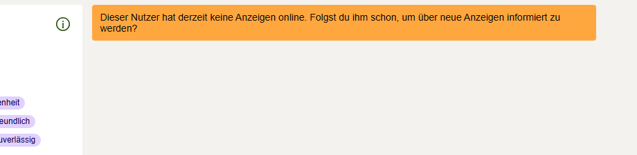 Das Problem tritt heute erneut auf. Die Plattform ist im Moment extrem inkonsistent: Über „Meine Anzeigen“ werden die Inserate korrekt angezeigt, aber im öffentlichen Profil erscheint „Dieser Nutzer hat keine Anzeigen“.