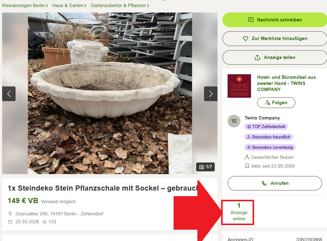 unter „meine anzeigen“ stehen einige meiner anzeigen, es sind in diesem profil 18 stk.