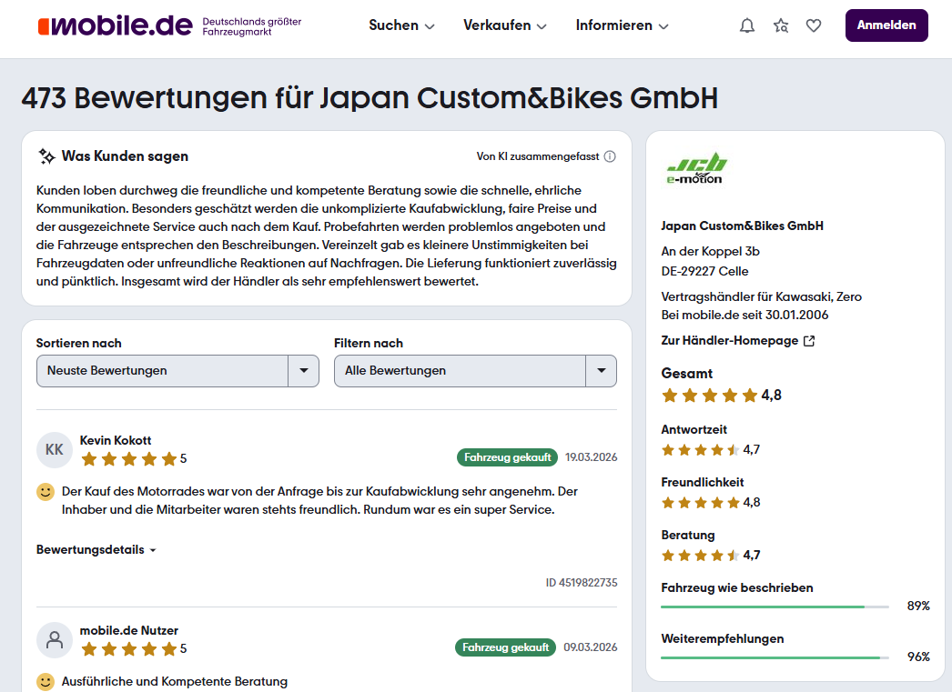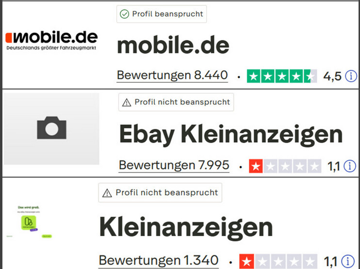 Wenn man die beiden Screenshots nebeneinander sieht, Mobile.de mit professionellen, ausführlichen Bewertungen und daneben Kleinanzeigen mit einem fast kindlich wirkenden Bewertungssystem, stellt sich für mich ehrlich gesagt eine Frage: Sollte Kleinanzeigen sich dafür nicht schämen? Eine Plattform mit diesem Marktanteil und diesen Einnahmen liefert hier ein Niveau ab, das weit unter dem Branchenstandard liegt.