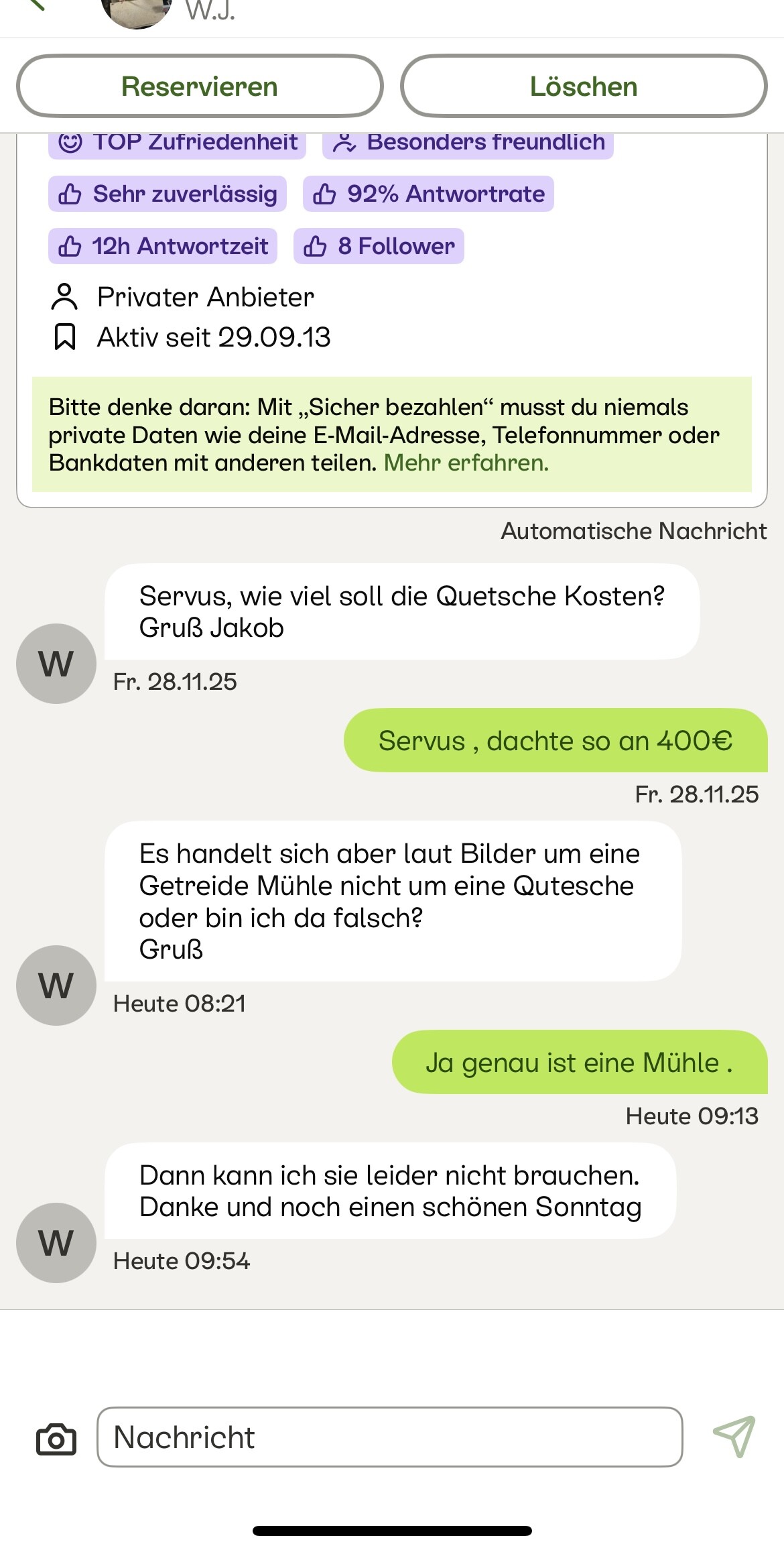 Auch sehe ich in meiner Nachrichten Übersicht in der App auch immer mein Kürzel , anstatt die der Interessenten . Außer der andere hatte zuletzt geschrieben .