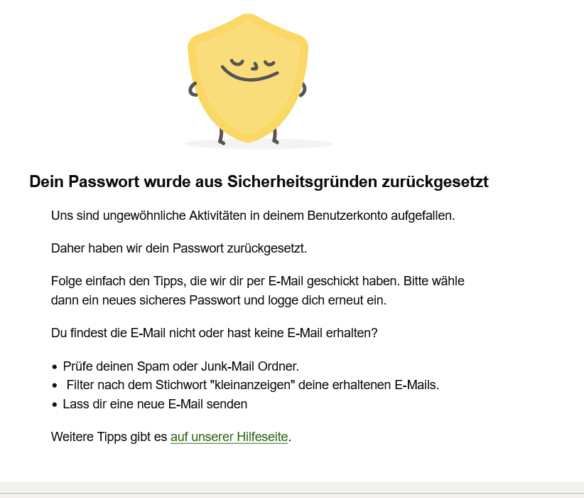 man wird aufgefordert ein neues passwort zu vergeben, dann kommt eine email die man bestätigen soll.