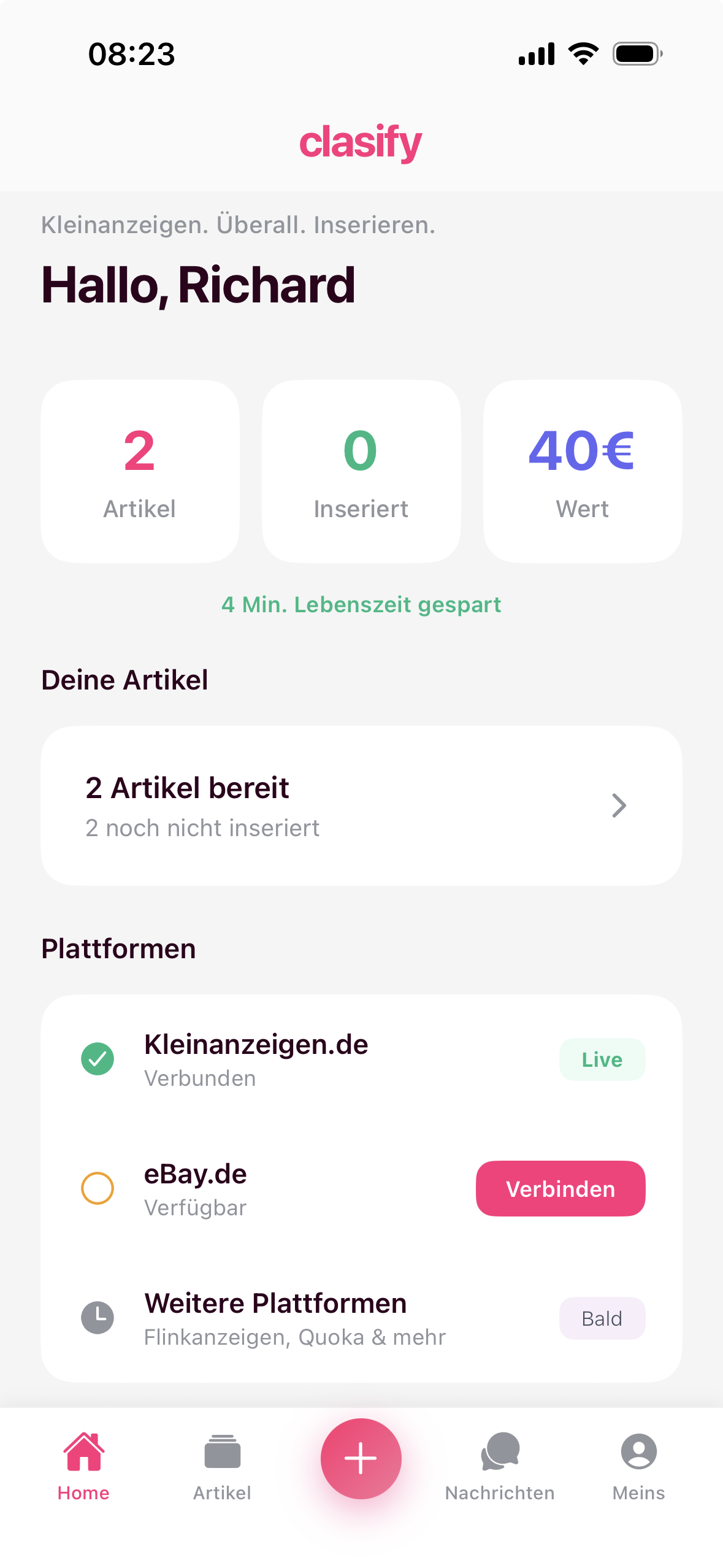 wir arbeiten hart an der kommenden Clasify App und eine erste interne Beta-Version ist bereits fertig. Allerdings ist da nur Kleinanzeigen.de angebunden, mein Ziel ist es, demnächst noch Flinkanzeigen und eBay zu integrieren, sodass Cross-Listing möglich ist, worum es in der App ja hauptsächlich geht. Wir arbeiten bereits eng mit Flinkanzeigen zusammen und ich denke, es sind nur noch wenige Wochen, bis wir dann auch mit dem öffentlichen Beta-Test starten können. Die App kann dann für iOS oder Android heruntergeladen werden.